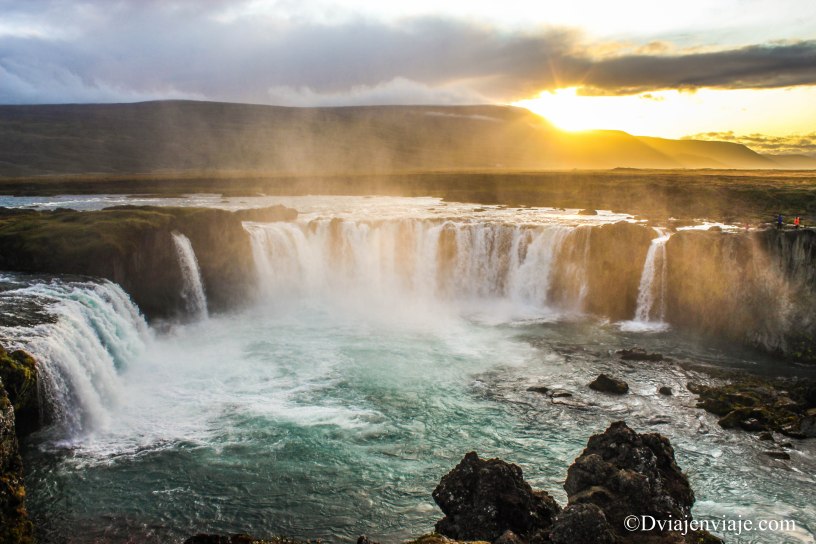Su traducción literal es la cascada de los dioses. Se llama así porque en el año 999 ó 1000 se lanzaron a su agua estatuas de los dioses nórdicos, tras adoptarse en Islandia el cristianismo como religión oficial. Godafoss es una de las más espectaculares del norte de la isla y contemplarla al atardecer es un lujo digno de dioses.