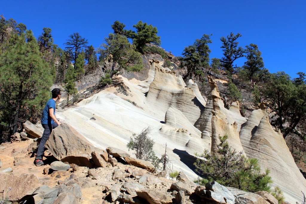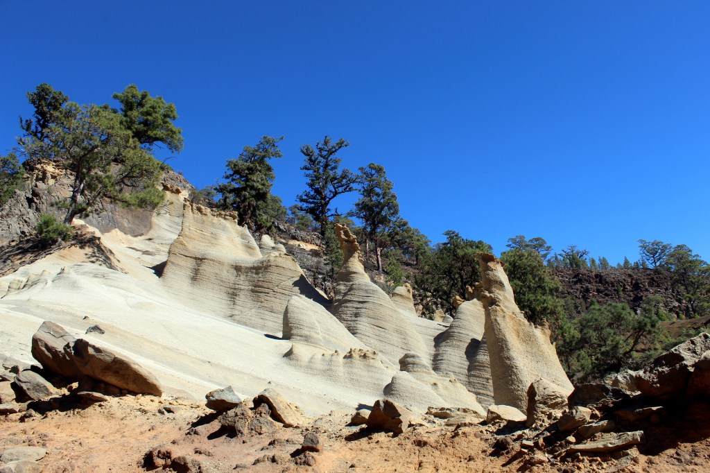 El Paisaje Lunar es una de las formaciones geológicas más singulares de Canarias, un auténtico regalo de la naturaleza. Hace cientos miles de años en la zona que se encuentra se fraguó una alianza entre volcanes y agentes erosivos como el viento y la lluvia, que ha dado como resultado este tipo de esculturas naturales, conocidas en geomorfología como chimeneas de hadas. Sus cónicas figuras son de fantasía y nos hacen viajar con la imaginación hacia otros lugares de la galaxia, de ahí viene su nombre.