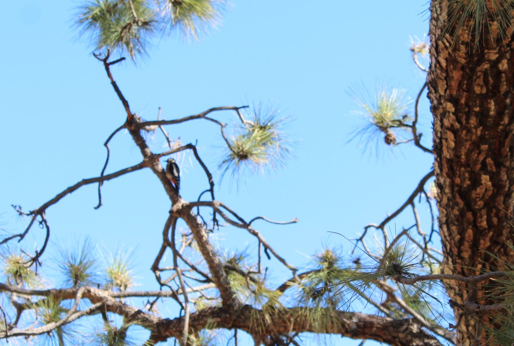 Sin hacer mucho ruido podrás escuchar el canto de aves como el pico picapinos o el pinzón azul y el sonido de la brisa al acariciar las ramas de los pinos canarios (pinus canariensis), árbol que predomina en el sendero y cuya característica más valiosa es su resistencia al fuego.