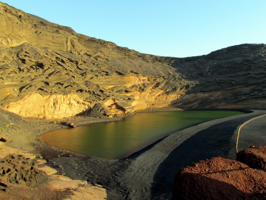 Otra de las playas imprescindibles de Lanzarote es la del Golfo popular por su Charco de los Clicos o Charco Verde debido al color que pintan las algas que habitan en la laguna protegida.