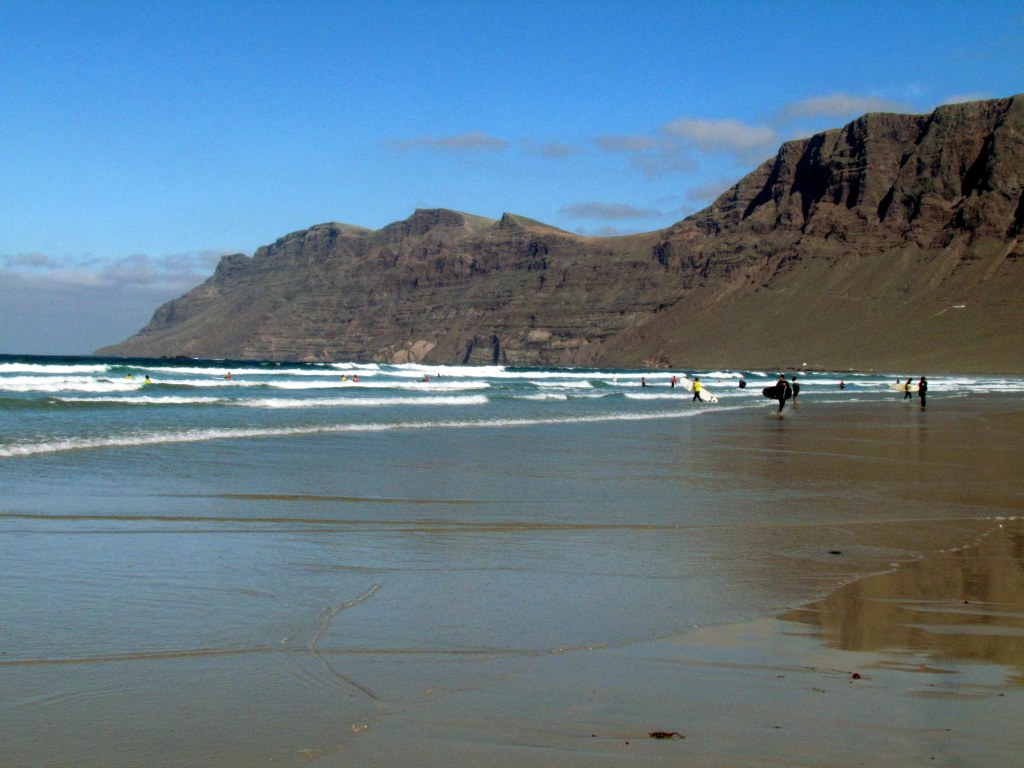 ¡Comenzamos con la bella y espectacular playa de Famara! Ubicada en el animado municipio de Teguise, es una playa kilométrica de más de 5.000 metros de largo y de la que casi no alcanzas a ver el final.